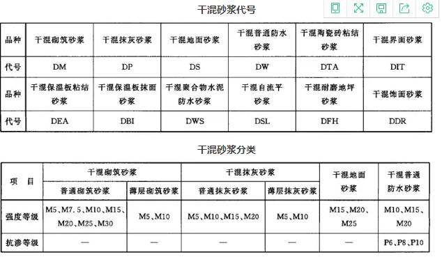 干混砂漿表格: